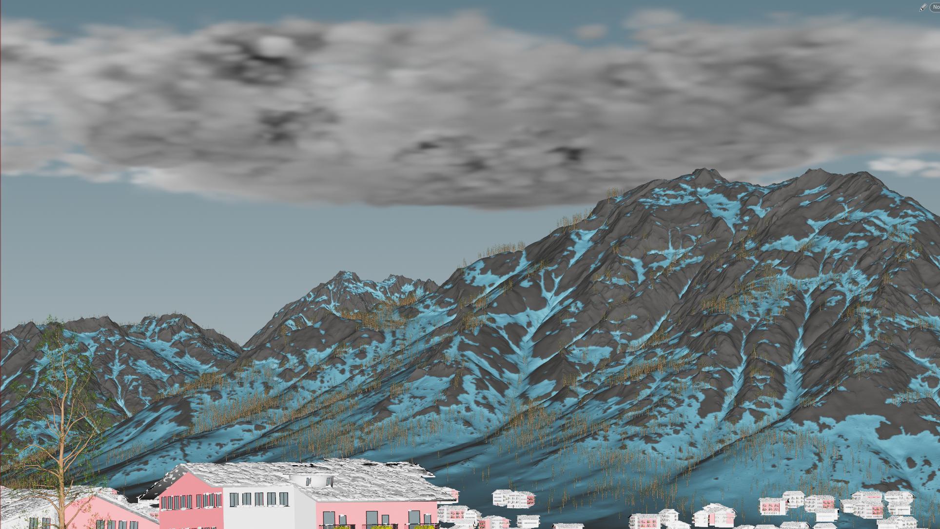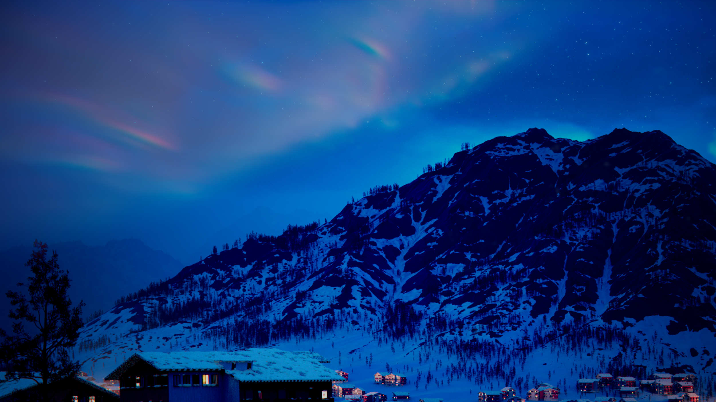 Environment study: snowy weather with a touch of magical coming from the sky. Inspired by Switzerland photos.
